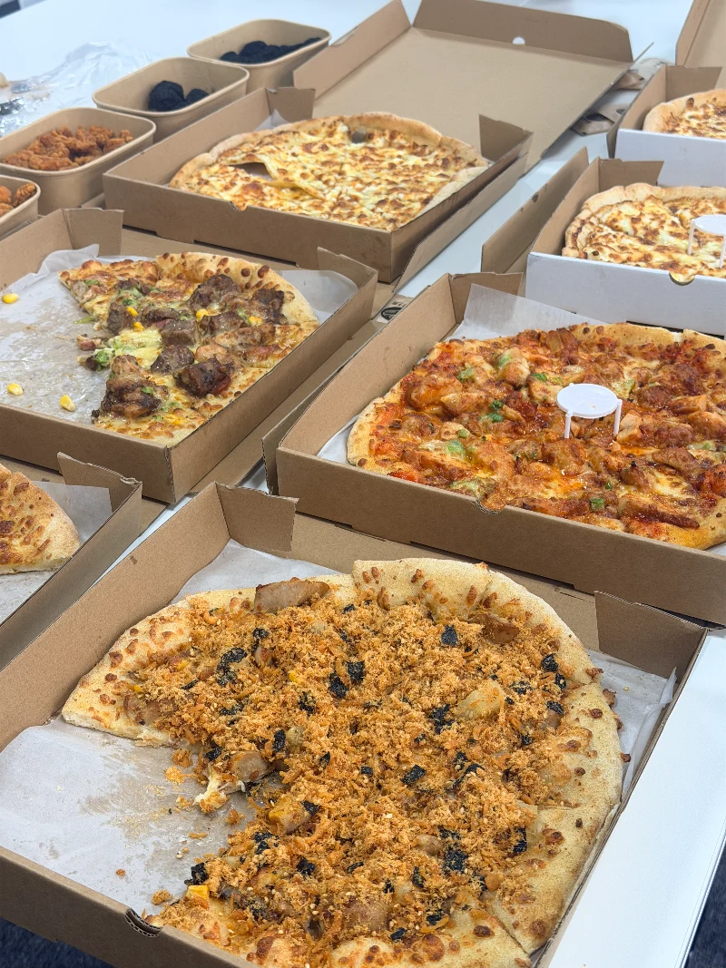 Generosos trozos de carne de res a la pimienta negra, combinados con maíz dulce y vegetales frescos. La sabrosa carne mezclada con queso derretido: saciante y energizante. La pizza de pollo Orleans era igual de buena: tierna, sabrosa e incluso los amantes de las verduras no vegetarianas optaron por una segunda. Fue el combustible perfecto para una tarde ocupada.
